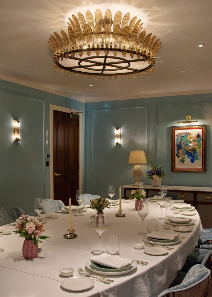The Demob Bar embodies the characterful heart of the project. With no natural light and a tented illuminated ceiling, the room is shaped through layered accent and decorative lighting, supported by intimate table pieces and a striking back-lit onyx bar. The private dining rooms, each with its own tone and personality, demonstrate the flexibility of the lighting strategy, balancing daylight conditions, evening ambience and event requirements. As a result, we the commercial lighting scheme that enhances the architectural rhythm, supports the interior design vision and delivers the atmosphere expected of a world-class private members’ club.